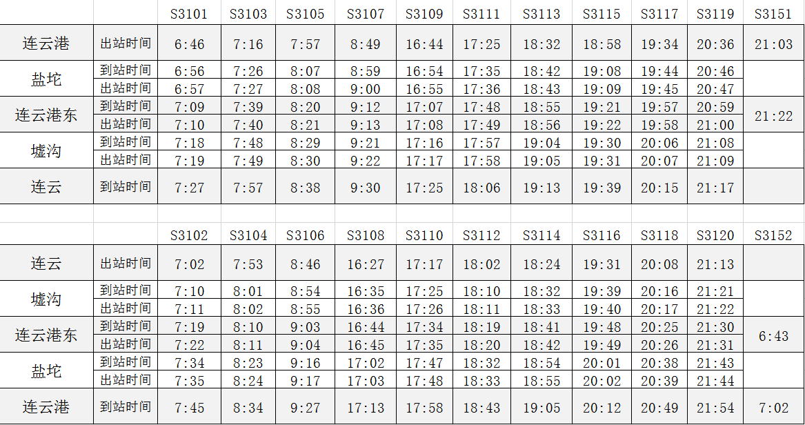 市域列車一期工程連云港站至連云站,線路全長(zhǎng)35.1公里,沿線設(shè)置連云港、鹽坨、連云港東、墟溝、連云共5個(gè)客站。開通運(yùn)營(yíng)后,市域列車每日有11對(duì)列車對(duì)開,10對(duì)在連云港站至連云站區(qū)間運(yùn)行,1對(duì)在連云港站至連云港東站區(qū)間運(yùn)行。