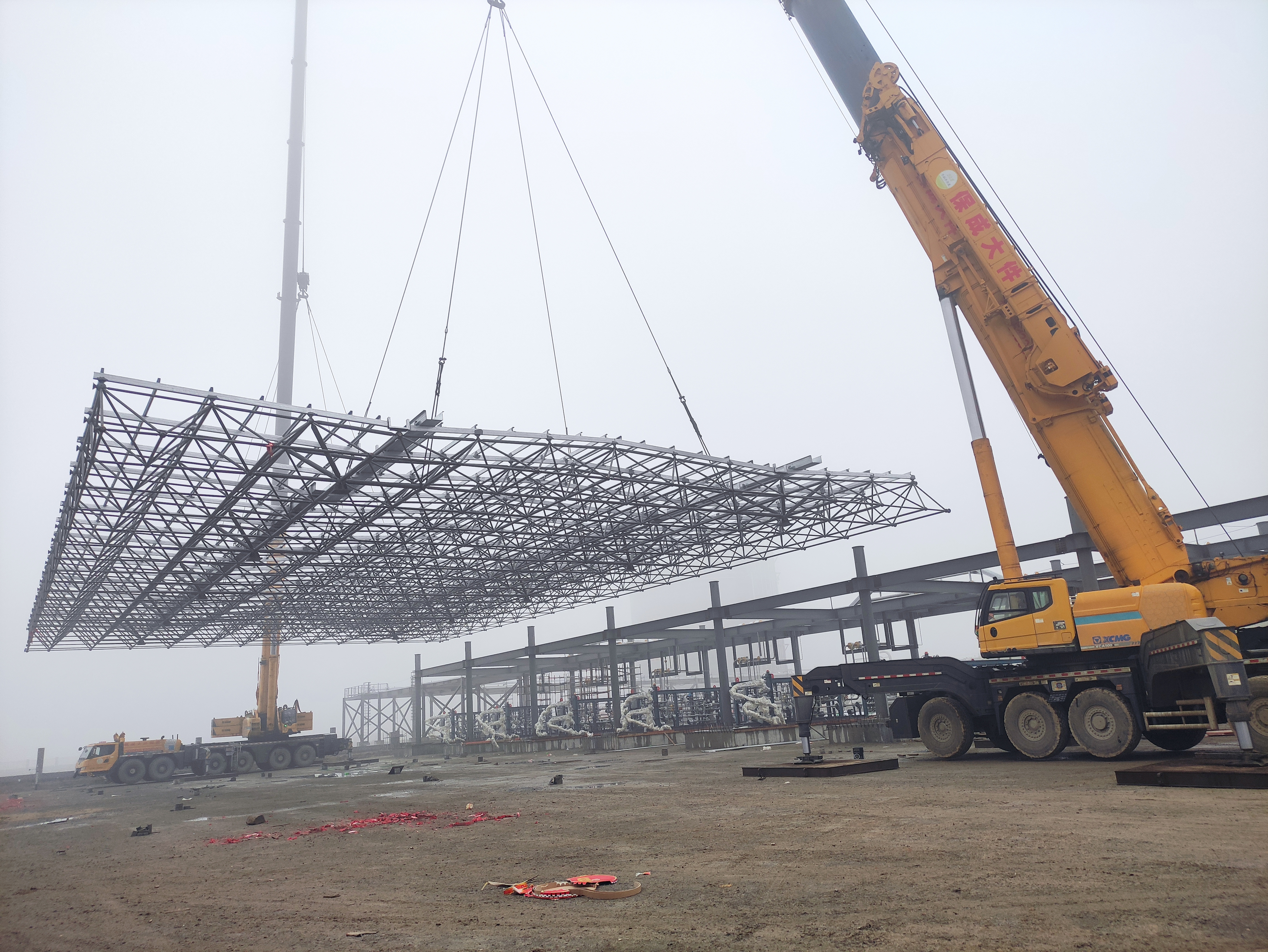 12月30日,物流集團(tuán)LNG儲(chǔ)配站槽車裝卸區(qū)鋼結(jié)構(gòu)網(wǎng)架精準(zhǔn)落位,槽車裝卸區(qū)鋼結(jié)構(gòu)吊裝順利完成,標(biāo)志著影響工期關(guān)鍵節(jié)點(diǎn)的鋼結(jié)構(gòu)施工實(shí)現(xiàn)突破。