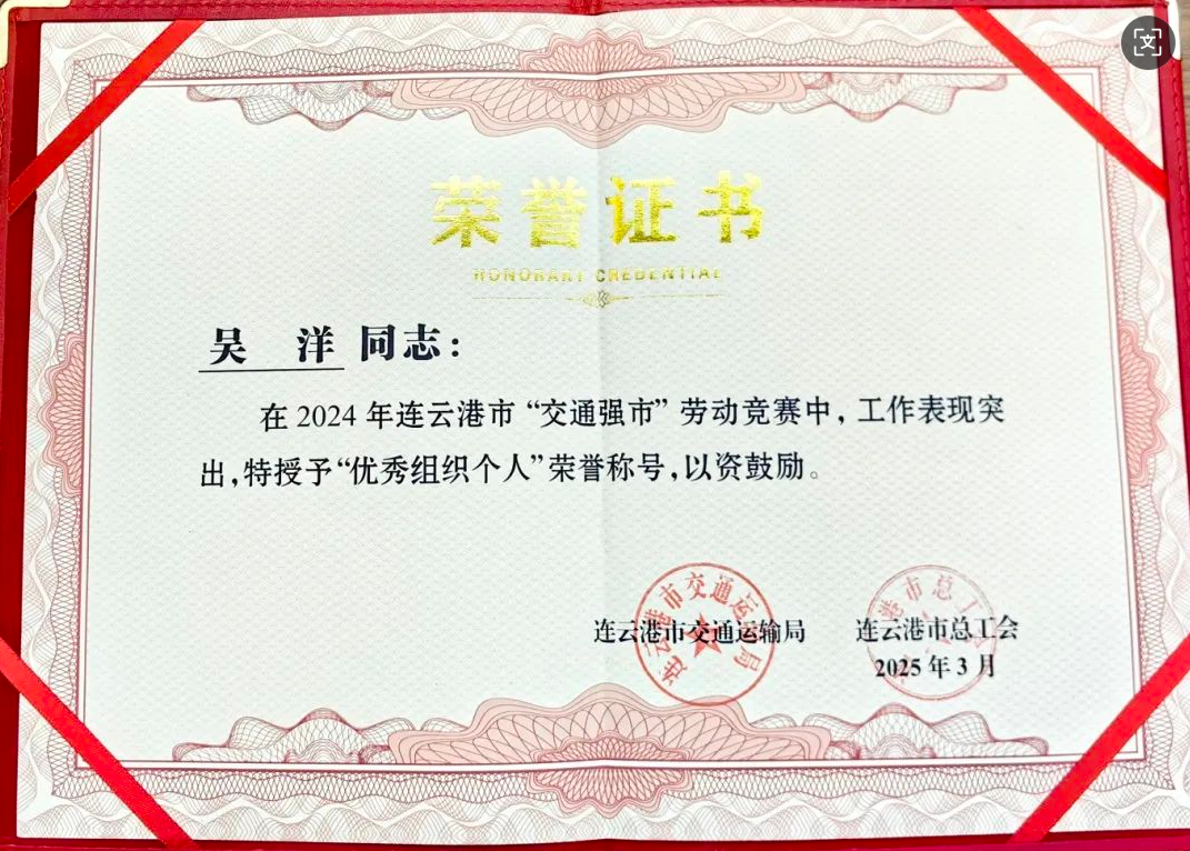 近日,市總工會、市交通運輸局聯(lián)合發(fā)布了2024年連云港市“交通強市”勞動競賽評選結(jié)果,物流集團獲評連云港市“交通強市”勞動競賽優(yōu)勝集體;權(quán)屬信泰公司LNG儲配站建設(shè)班組榮獲優(yōu)勝班組稱號;信泰公司副總經(jīng)理吳洋獲評優(yōu)秀組織個人。