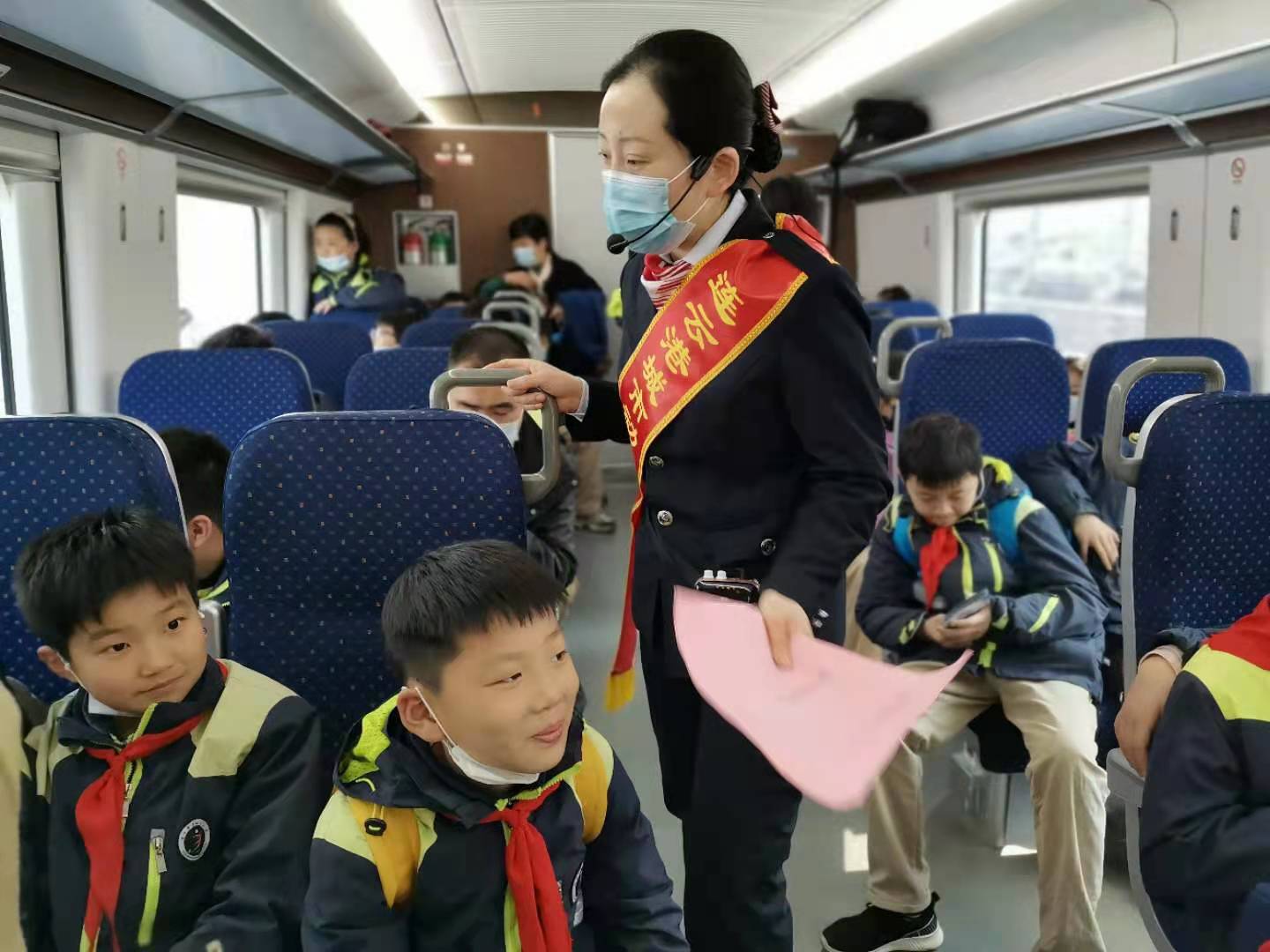 近日,墟溝小學的師生們整裝待發(fā),來到城市動車墟溝站,體驗城市動車舒適快捷。城市動車站務員們熱情接待了他們,站務員給同學們介紹了墟溝站的概況,尤其是墟溝站的頂棚設(shè)計采用起伏多變的波浪造型,它象征著“星辰大?!保w現(xiàn)港城特色的海洋文化。同學們在月臺等候列車時,看見列車駛?cè)胝九_,同學們沸騰了,大聲說到:“美猴王踏著祥云向我們飛來了。”在車上,站務員們?yōu)橥瑢W們講解了城市動車的概況、乘車禁止攜帶的危險品及高鐵、動車、普速列車的區(qū)別。高鐵是以G開頭的車次,動車是以D開頭的車次;高鐵時速是在300公里以上,動車時速是在200公里以上;高鐵使用的是專用鐵軌,動車使用的既可以是高鐵專用鐵軌,也可以是經(jīng)過改裝的普通鐵軌;高鐵可以稱作專線,設(shè)置的站臺很少,動車全線設(shè)置,站臺較多;動拖比不同,高鐵屬于強動力分散型,動車屬于弱動力分散型;動車比普速列車速度快是因為動力不同,動車是無牽引力軌道車輛,裝配有驅(qū)動車輪;而普速列車是由一至三節(jié)機車牽引若干車廂或車皮組成。同學們聽完講解,熱情高漲,并與站務員相互交流。在不知不覺中,列車已經(jīng)到達了終點站連云站。墟溝小學張校長講,通過這次活動不僅讓同學們感受到了城市動車的舒適快捷,也豐富了同學們的課外知識,并為你們熱情服務和業(yè)務素養(yǎng)點贊。