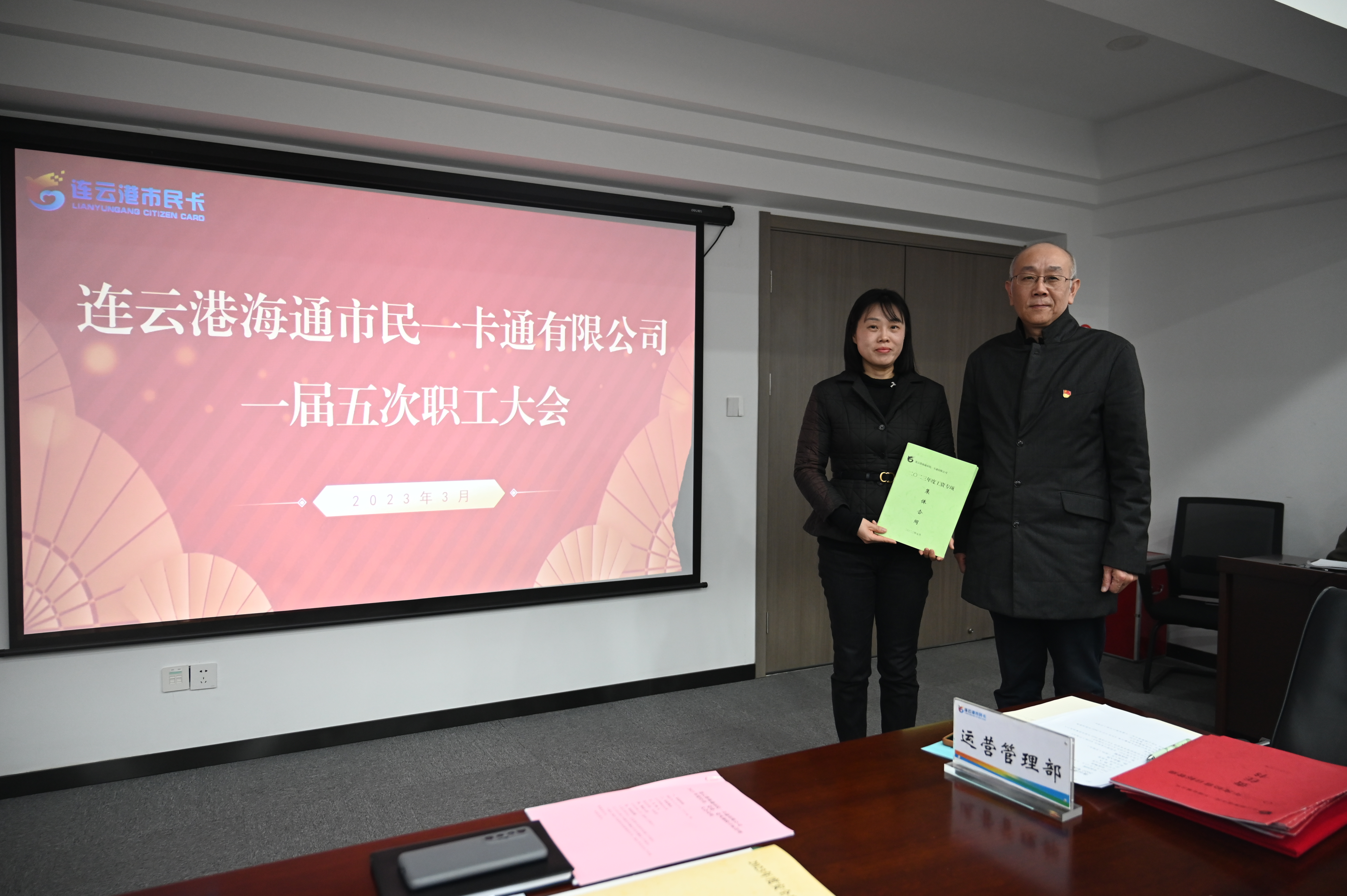 會議審議通過了《2022年度工作報告》《2022年度工會工作報告》《2022年度決算報告暨2023年度預算報告》《連云港海通市民一卡通有限公司職工手冊》,工會主席王冰向公司黨支部書記、總經(jīng)理葉星妍遞交了市民卡公司《“1+3”集體合同》。