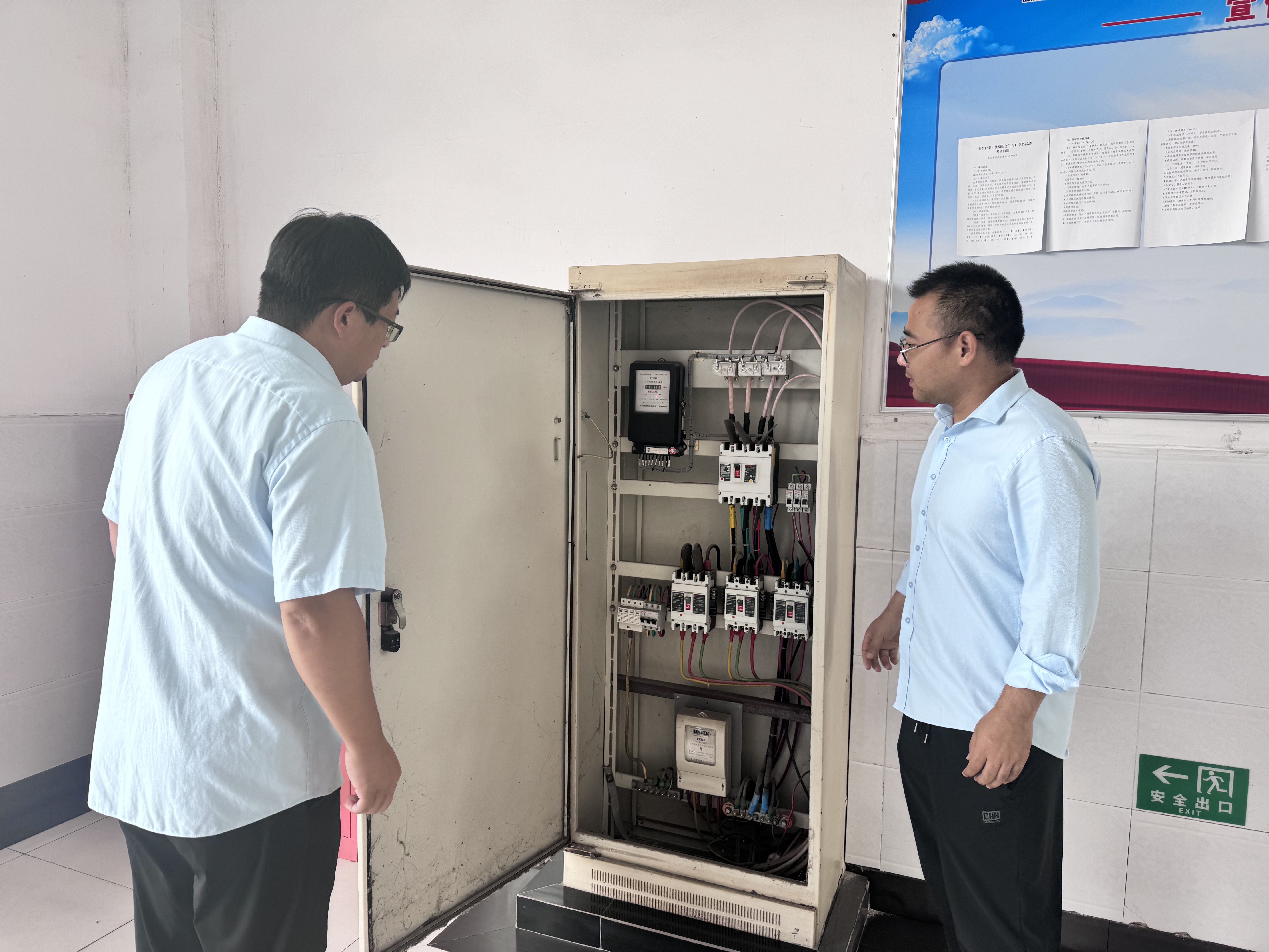 排查行動首站聚焦久和總站。張作直奔用電核心區(qū)域,帶頭檢查電閘開關(guān)運(yùn)行狀態(tài),用手輕觸電閘外殼感受溫度,查看有無過熱現(xiàn)象;隨后沿著線路排布逐一展開排查,仔細(xì)觀察線路絕緣層是否完好,有無老化、破損痕跡。“線路就像場站的‘血管’,一點(diǎn)破損都可能引發(fā)大問題。”他邊檢查邊向工作人員強(qiáng)調(diào)。來到插座區(qū)域,他逐一插拔測試穩(wěn)固度,手指輕按檢查接地是否牢固,同時(shí)提醒工作人員“用電設(shè)備要定期檢查,發(fā)現(xiàn)異常立即停用,絕不能抱有僥幸心理”。